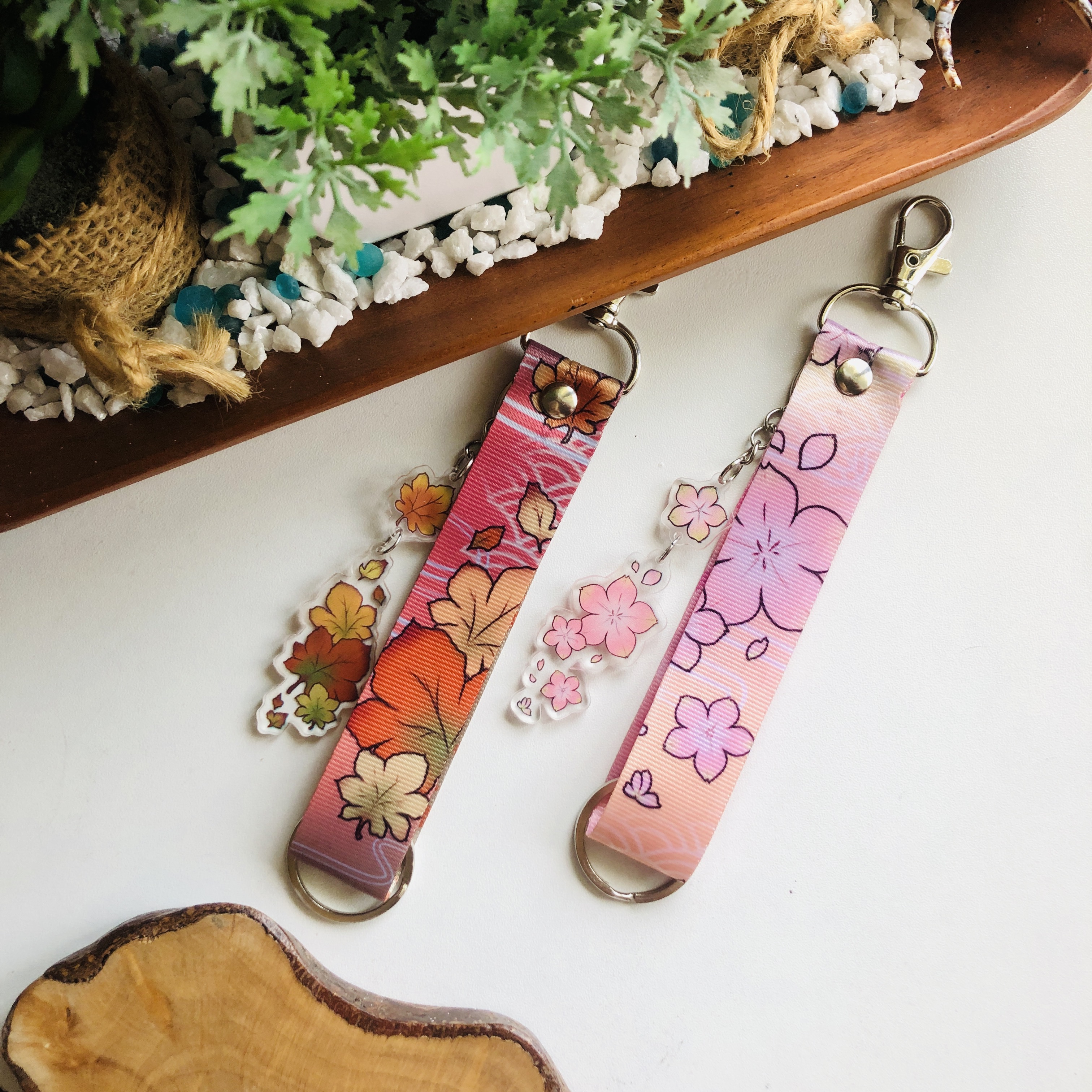 Autumn and Cherry Blossom Lanyard Keychain