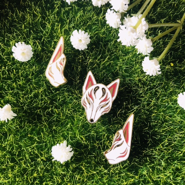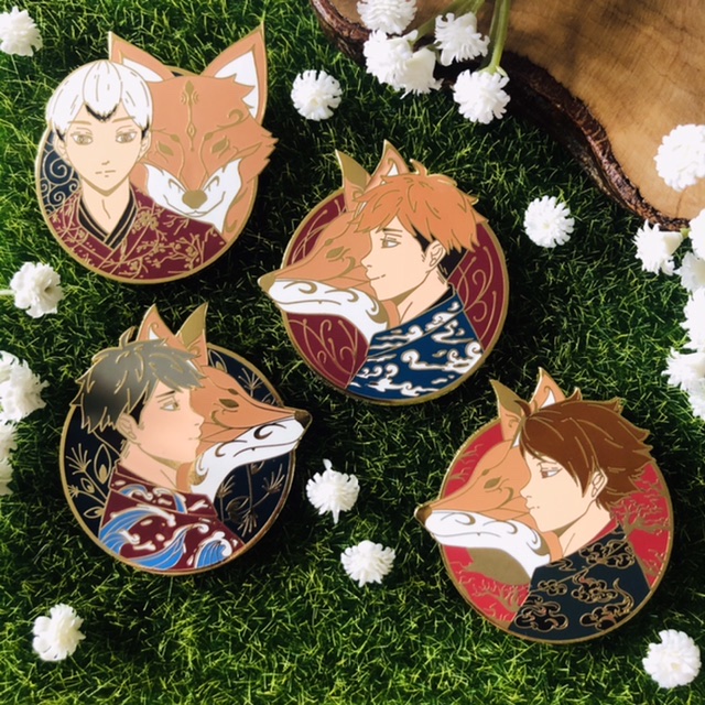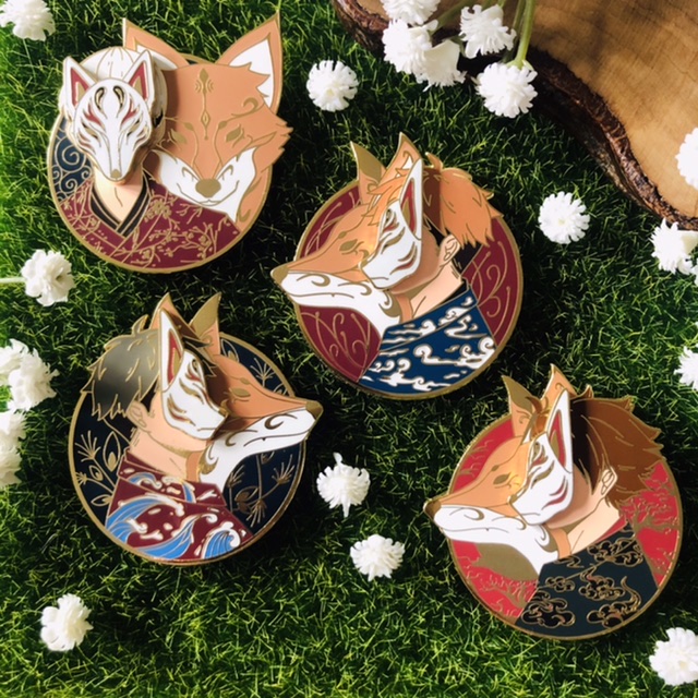 The fox masks are magnets and they will only work with the new batch of inarizaki pins. Those of the previous batch are made of brass and will not work with magnets.