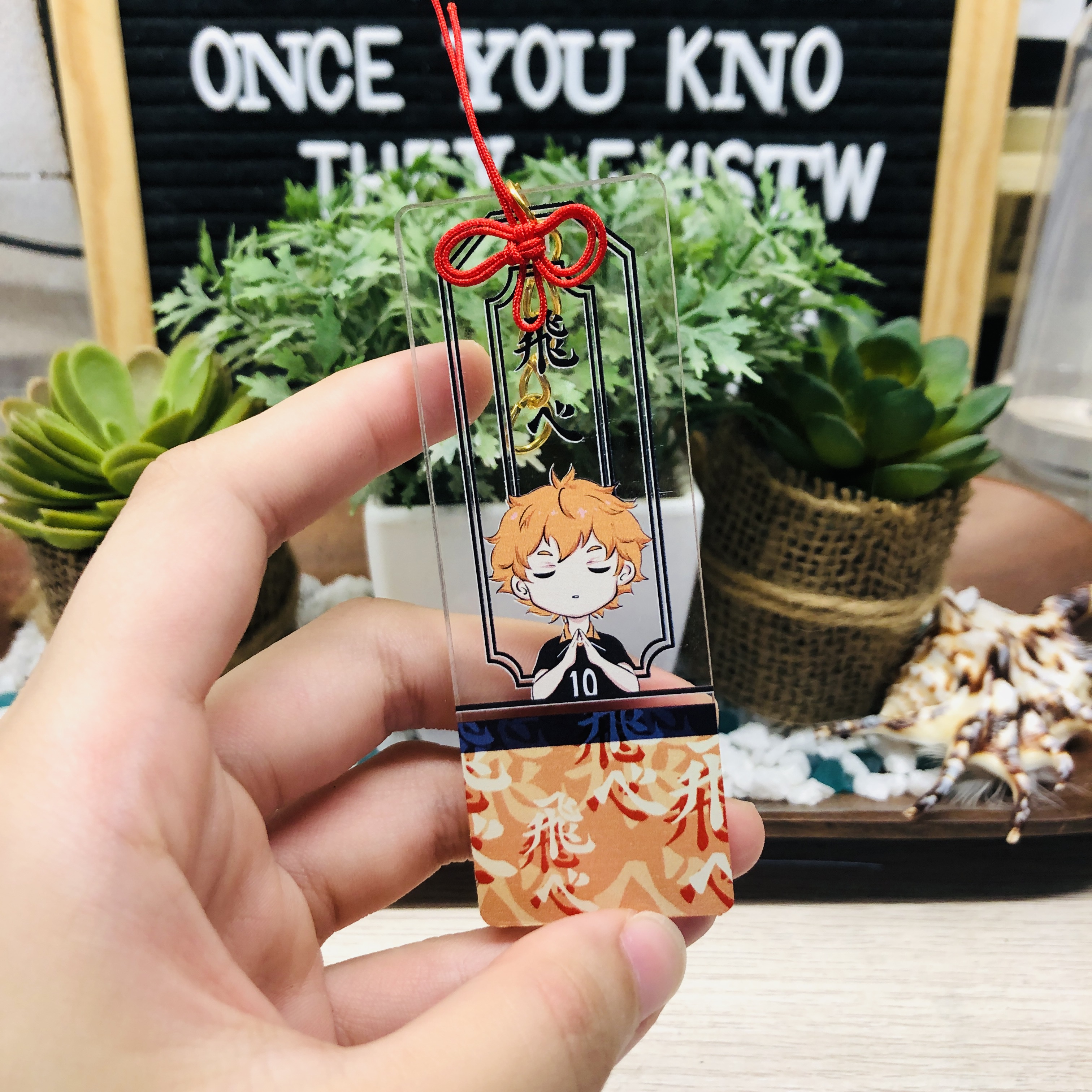 3" single board double sided print clear acrylic charm with golden flat keyring